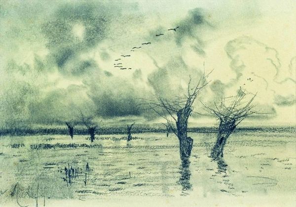 Albert Gottschalk created this oil-on-canvas artwork, River Landscape with a Bridge. Immediately, you will notice that the painting is dominated by a monochromatic palette. The subtle gradations of gray evoke a tranquil, almost melancholic mood. The composition is structured around the horizontal emphasis of the bridge and the water, bisected by the verticality of the trees. This interplay between horizontal and vertical elements creates a delicate balance. The structural simplicity is deceiving, it invites a deeper contemplation of space and form. Gottschalk’s choice to limit his palette to grayscale invites us to focus on the formal elements of the painting—the texture of the brushstrokes, the play of light and shadow, and the overall composition. In doing so he challenges our perception of landscape painting. He reduces it to its most essential components, it provokes us to question what constitutes a landscape and how we perceive our environment. Ultimately, Gottschalk prompts us to engage in a visual and intellectual dialogue about the very nature of representation.