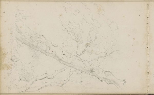 Willem Cornelis Rip made this drawing of a storm-damaged tree branch with graphite on paper. The artist's choice of a seemingly simple material like graphite is quite telling. It’s a medium accessible to many, and the way Rip uses it here is almost democratic. The lines are direct, unpretentious, capturing the raw essence of the broken branch. You can almost feel the weight of the wood, the jagged edges where it splintered. Graphite, in its very nature, leaves a trace, a residue of the artist's hand, mirroring the enduring impact of the storm on the tree. It’s also important to see this drawing as a product of labor. Rip has put in the work to observe, to translate what he sees onto paper. The materiality of the drawing, the graphite and paper, are humble, but the act of making transforms them. Ultimately, this drawing challenges our notions of what art should be. It’s not about grandeur or spectacle, but about the intimate connection between artist, material, and the world around us.