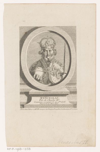Editor: So, here we have Reinier Vinkeles’ print, "Portret van Wolfert I van Borselen," created sometime between 1783 and 1795. It's an engraving and etching and quite small. I am really interested in the duality here – a formal portrait juxtaposed with such a chaotic scene below. What jumps out at you? Curator: The portrait, framed like a medal, presents Wolfert as an emblem of power. But it's the scene beneath that really pulses with symbolic weight. It shows a historical episode; notice how figures flee or are hung? Images such as these have power in cultural memory, particularly when presented with this much symbolism. This recalls justice, but is justice always fair? How might an image like this shape public perceptions of power and governance? Editor: That is a great point. I hadn't really considered it like that before. Curator: Visual symbols embed complex narratives, layering associations and influencing emotional responses. Can we unpack those cultural memories or even subconscious fears this might evoke in its contemporary viewers? Think of public executions and the instability of social order... Do the hanging figures evoke ideas about order or chaos? Editor: Definitely evokes chaos, and perhaps warns about the consequences of upsetting the existing order, at least from the perspective of those in power. It is definitely heavy. Curator: And how interesting it is that the engraver created the original work well after his death... cultural memory shaping legacy. The artist is no longer separated from the patron! Editor: It gives a totally different perspective when you consider all these intricate layers. It definitely enhances my interpretation of the print, viewing it with symbolic significance. Curator: Precisely. The visual language echoes throughout history. I, too, walk away seeing the image with different eyes. Thank you!