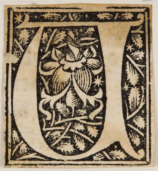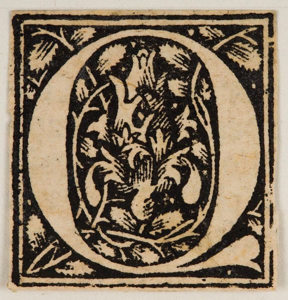 Curator: Here we have "Letter O," an intriguing example of an initial from an unknown hand. I find it rather...haunting. So much heavy black ink surrounding the stark white figure in the center. Editor: The figure is compelling. It seems genderless at first glance, yet the floral motifs suggest a deep connection to nature and perhaps a commentary on transformation. Curator: Absolutely. The figure reminds me of the Green Man archetype, a symbol of rebirth found in many cultures, but here contained, almost trapped within the letter. The lack of known authorship also points to a collective cultural impulse. Editor: Or perhaps erasure? Who are the anonymous artists and artisans whose labor has been rendered invisible? I wonder about the sociopolitical forces at play during the creation of the work, dictating that their contributions remain unacknowledged. Curator: Food for thought. Still, the "O" itself—a vessel, a beginning, an ending. Editor: Yes, a constant reminder that origins are always more complex than they seem.