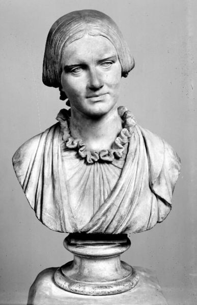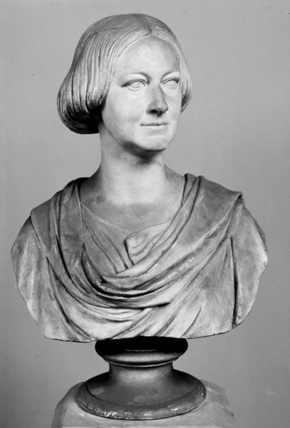 This is a marble bust of Signe Puggaard, sculpted by H.W. Bissen. Note her simple, elegant drapery, reminiscent of classical sculptures. The drapery isn't just fabric; it carries the weight of ancient virtues. It echoes the robes of Roman senators and Greek goddesses, symbols of civic duty and divine grace. These references aren't accidental. Artists like Bissen consciously invoked classical antiquity to ennoble their subjects. Consider how the folds cascade around her shoulders, a visual echo of similar motifs in Renaissance paintings of Madonnas. The Madonna’s drape signifies purity, shelter, and maternal compassion. In Signe’s bust, this motif might suggest an aura of virtue or benevolence. The motif transcends its original religious context, evolving into a symbol of idealized femininity. The enduring power of drapery lies in its ability to engage our emotions on a subconscious level. It reminds us of shared cultural values, eliciting a sense of connection to the past.