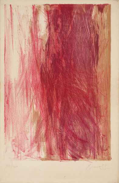 This is Untitled [plate LXXV], a print by Joan Miró, but when it was made, I couldn’t tell you. What strikes me about this piece is its color and texture, a kind of wood grain effect, all in red. You know, for an artist associated with surrealism and playful abstraction, this has a really tactile, almost earthy quality to it. The surface isn't smooth; you can almost feel the roughness of the wood. It’s as though Miró wanted us to experience the physicality of the material, not just see an image. Look closely, and you can see how the grain varies, creating areas of light and shadow, density and openness. There's a kind of directness here, something raw and unrefined. Miró's contemporary Antoni Tàpies springs to mind. He used unconventional materials such as marble dust and sand, embedding them into his painting to create abstract surfaces. Both artists make you consider the artwork as a physical object as well as an image.