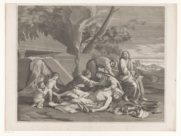 Odvardt Helmoldt de Lode made this print, entitled Vignet til Tordenskjolds levnedsbeskrivelse, sometime in the mid-18th century. It depicts the naval hero Peter Tordenskjold, ennobled for his service to the Danish Crown. We see Tordenskjold receiving honors, possibly in reference to the posthumous publication of his biography. These honors are being bestowed by allegorical figures, classical gods and cupids, all visual devices meant to augment the status of the biography's subject. This print exemplifies the visual strategies through which institutions, whether the monarchy or the book trade, manufacture a cult of personality. Through formal analysis and historical research, one can uncover how political and cultural institutions work to create heroes. Such images are not neutral records, but tools for social construction.