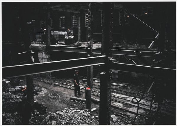 Curator: Christine Sullivan's "Narcissus" presents a compelling and somewhat eerie scene. My immediate reaction is one of stark isolation, enhanced by the industrial architecture and the interplay of light and shadow. Editor: Indeed. Consider the historical context of abandoned industrial spaces. They become sites of memory, reflecting societal shifts and economic transformations. Curator: And the title, "Narcissus," adds a layer of psychological depth, hinting at themes of self-reflection and perhaps even the dangers of solipsism within these forgotten landscapes. There is a focus on the self. Editor: I agree, the mirroring effect of the water adds to that feeling and transforms the setting into a space for introspection and perhaps a critique of industrial progress and its legacy. Curator: Absolutely. The image becomes a mirror, reflecting our own anxieties about the impact of industry on our environment and psyche, particularly within patriarchal societies. Editor: The photograph is a stark reminder of the complex relationship between humanity and its creations. Curator: Precisely. It prompts us to consider our own roles in shaping and being shaped by the spaces we inhabit, physically and psychologically.
