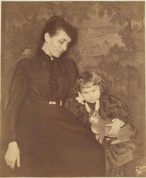 Alfred Stieglitz made this photograph of Ma and Georgia Engelhard, we think sometime in the early 20th century. He’s captured this quiet moment in soft, silvery tones, creating a scene that feels both intimate and a little mysterious. Look closely, and you’ll see the way the light catches on the girl's hair, and on the delicate thread her grandmother is using to sew. It's all about texture here: the smooth paper in the child's hand, the rough fabric of their clothes, and the slightly blurred background. Stieglitz isn't just documenting; he's creating a mood. There is something about this image that feels so raw and honest, like a snapshot from a family album. The woman is absorbed in her stitching, oblivious to the camera, in contrast to the child who looks into the lens, as if posing, or perhaps even questioning the artist's intrusion into her life. This kind of attention to ordinary life reminds me of the paintings of Pierre Bonnard who elevated the everyday to the level of high art.