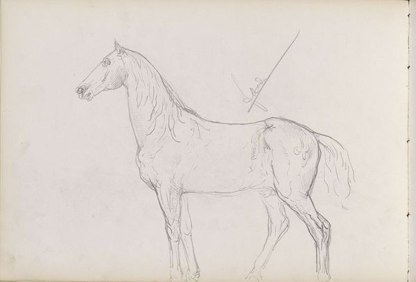 Jean Bernard made this sketch of a horse standing in a stable with a blanket on its back, around the late 18th to early 19th century. Bernard, who lived through the Batavian Revolution and the Napoleonic era, would have witnessed the changing role of horses in both military and civilian life. The image captures the animal's subdued strength and its reliance on humans. Note the horse’s covered back and the trappings which suggest both care and utility. The horse here isn’t a romanticized symbol of freedom, but an animal of service. Consider how the drawing invites us to reflect on the labor and lives of animals, often unseen, that have been so intertwined with human history and progress. It’s a quiet, yet potent reminder of their presence.