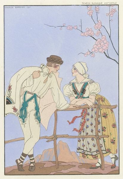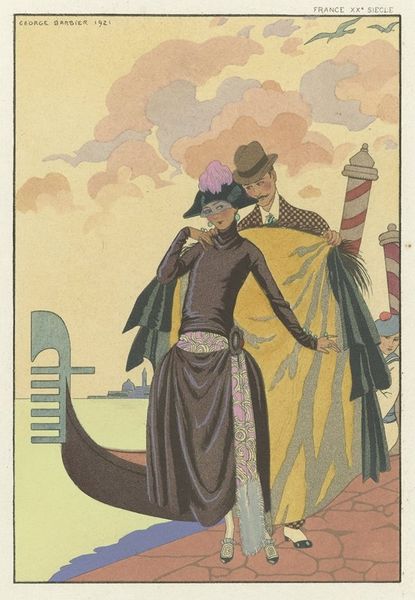 George Barbier made this illustration, "N’ayez pas peur, petite !," sometime in the 20th century. It's a scene from 18th century Scotland, rendered in an Art Deco style, where flat, bright colours create a sense of stylised elegance. The colours are light and airy, like cotton candy, and the lines are so precise, almost machine-made. But that's what gives it its charm! Everything looks so neat and controlled, but then you notice the weird, almost cartoonish waves at the bottom, and it's like, oh yeah, this is handmade. It reminds me of Erte, with that similar commitment to decorative splendour. But there's also something very contemporary about the way Barbier flattens everything out, reducing figures to patterned surfaces. It’s like he’s playing with our expectations of depth and perspective, turning people into chic, fashionable objects. A reminder that art is not just about representing the world, but also about creating new ways of seeing it.