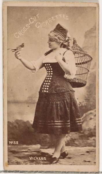 Allen & Ginter’s “Card 409, Jennie Bernhardt,” is a late 19th-century trade card made for Virginia Brights Cigarettes. Its sepia tone lends the image a nostalgic aura, while the actress’s ornate attire hints at the opulence of the Gilded Age. The actress is positioned as a study in contrasts. The curves of her fan are juxtaposed with the sharp angles of her plaid jacket. Note how the vertical text of the brand name reinforces the vertical lines of the skirt, drawing the viewer's eye to the product being advertised. This interplay of shape and text creates a visual tension, reflective of the cultural codes of beauty and commerce at play. The card challenges the traditional notions of portraiture and advertising. It suggests that meaning is not fixed but rather emerges from the complex interplay of visual and textual elements, forever open to re-interpretation within our shifting cultural landscape.