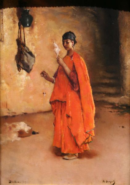 Edwin Lord Weeks captured these two women in an undated oil sketch, highlighting the materiality of culture. Weeks, a Western artist, uses visible brushstrokes to render the figures and their garments. The very act of painting becomes a form of cultural translation. The texture of the oil paint mimics the rich textures of the women's clothing and jewelry. The weight of the scene lies not just in its visual depiction but in the implied labor and skill involved in producing these cultural artifacts. Consider the intricate beadwork, metal ornaments, and detailed textiles. These were all carefully wrought, reflecting hours of labor and skilled craftsmanship. By painting them, Weeks acknowledges the value of these handmade items and the people who create them. This elevates the so-called "decorative" to the level of fine art. Weeks asks us to appreciate the cultural significance embedded within these objects, blurring the lines between Western art and global craft traditions.