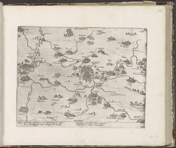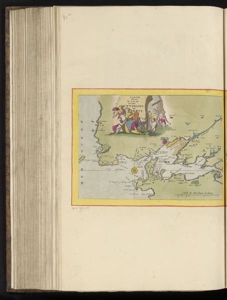 Curator: This watercolour illustration offers a cartographic perspective of Saint-Malo and its surroundings, dating back to around 1690-1700. Created by an anonymous artist, it’s a fine example of Baroque landscape drawing, now residing here at the Rijksmuseum. Editor: My first thought? A treasure map! It’s charming, the sort of image you’d expect to unfurl in a pirate’s den, all faded colours and the promise of adventure hidden among those islands. Curator: That sense of adventure is cleverly invoked through the artistry itself. Saint-Malo, as a prominent port, played a crucial role in maritime trade and, yes, even piracy. This map not only served navigational purposes, it was also likely a symbolic assertion of power and knowledge. Note how it presents a bird's-eye view, literally elevating the viewer. Editor: The water is so inviting, isn’t it? That pale blue hints at serenity, but I imagine it hid its fair share of secrets and squalls! And those meticulously rendered coastlines – I bet the artist spent hours observing the light hitting those rocks. The figures lounging at the left - perhaps imagining the riches they are to reap in the area? Curator: Precisely! They reflect the colonial aspirations of the era. Maps, then, weren’t simply geographical tools. They were instruments of empire, defining territories and influencing social power dynamics. We must also remember, for example, that the map simplifies a complex space that may look very different for the unprivileged user in the area. Editor: I hadn't thought about the inherent bias in creating and owning such depictions of the area, but it’s a critical point to consider when taking it in. From a technical perspective, I find the artist's blending of precise detail and artistic flourishes to be especially appealing, resulting in a somewhat dream-like composition despite its practical purpose. Curator: It certainly speaks volumes about how art and science converged during this period, a manifestation of power rendered beautifully. Editor: For me, it triggers the wistful desire to jump into my dinghy, follow the shores depicted in watercolour and try to experience that old world, imagining how this Saint-Malo really looked more than 300 years ago.