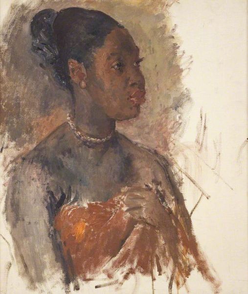 Zinaida Serebriakova made this work, Moor, with pastel on paper. The artist uses a soft, subtle approach, with delicate strokes and a gentle palette, which gives the piece a sense of quiet contemplation. I am drawn to the way Serebriakova captures the texture of the fabric, especially in the Moor's headscarf, with these dabs of red, yellow, and blue. It's almost like she's not just depicting a piece of cloth, but also the light filtering through it. Look closely at the hand supporting her face. The artist uses subtle shifts in tone to suggest the play of light and shadow on her skin, creating a sense of depth and volume. The lines are soft and blurred, giving the figure a gentle, almost ethereal quality. Serebriakova's approach to portraiture reminds me of Berthe Morisot's ability to convey a sense of interiority and vulnerability through subtle gestures and fleeting expressions. Both artists seem to understand that true beauty lies not in perfection, but in the imperfect, human moments that reveal our shared humanity.
