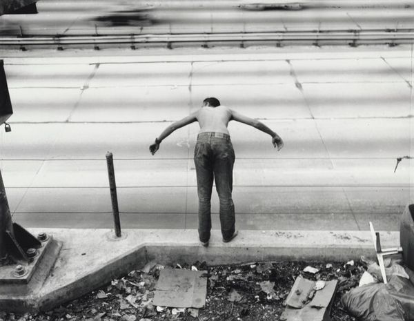 Editor: Scott Thode's "Venus," created for Life Magazine in 1994, captures a striking figure against the backdrop of an open fire hydrant. There's something both vulnerable and powerful about this image. How do you interpret this work in the context of its time? Curator: Considering its publication in Life, we must ask: who was the intended audience and what cultural narratives were being reinforced or challenged? The figure's pose evokes classical sculpture, yet the urban setting and raw, unidealized form disrupt traditional notions of beauty. What does this juxtaposition suggest about shifting societal values regarding body image and public space in the 90s? Editor: That makes me think about how the "ideal" was being redefined, maybe democratized, moving away from strictly classical forms. It's not just about art; it's about societal expectations, right? Curator: Precisely. The politics of imagery are always at play. Exploring how Life magazine presented this image to its readership provides critical insight into its reception and impact on public perception. It invites us to examine our own preconceived notions about beauty, representation, and the role of media in shaping culture. Editor: I'll definitely be looking at Life Magazine archives! Thanks for giving me a new perspective.