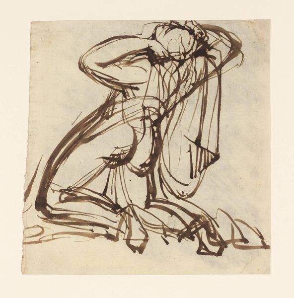 Othon Friesz made this study of a draped woman with ink on paper. It’s a sketch, really, all about capturing the pose, the fall of the fabric, with a real sense of speed. Look at the confidence of those dark, emphatic lines, they don't mess around. See how they build up the form, but also allow for a kind of ambiguity, where line can stand for both the edge of a figure, and the shadow it casts. It's a good example of how mark-making can become a form of thinking. Notice the difference in weight between the assured, firm lines of the figure and the pale shading beneath. The contrast gives the figure a solidity and presence, as if she is emerging from a dream. For me, this piece has an affinity with the work of Matisse, both in its subject matter and in the economy and expressiveness of the line. Ultimately, it reminds us that art is a conversation, a process of call and response.
