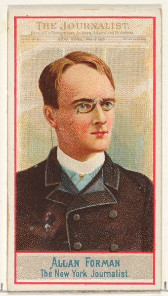 Curator: Immediately, I'm struck by the…fragility? There’s a sensitivity to this portrait despite its somewhat assertive subject. Editor: Indeed. What you are sensing likely comes from the delicate balance of the medium. This is "John G. Carlisle of Kentucky," one entry in the Presidential Possibilities series created around 1888 by W. Duke, Sons & Co. It's a print, originally intended as a promotional insert in packages of Honest Long Cut Tobacco. Think of the socio-political implications of this particular means for its wide circulation! Curator: Ah, so even art had to hustle back then. The 'Honest' tobacco part has me giggling slightly, especially now. Still, there's something very intimate about it, from the dreamy, impressionistic dab of turquoise behind his head, which almost makes the image look like it glows, to the almost cartoonish- rosy cheek of the man, a sense of his personal history, I wonder what dreams occupied him! Editor: Carlisle served as a US Representative and Senator from Kentucky and later as Secretary of the Treasury under President Cleveland. Understanding the context, those blushing cheeks signal something less innocent and probably much more driven – they are visual markers to be read on a social and political stage that excluded women, of course. How did the system decide on its leader? How did it package and sell that ideal to the masses? What image did men have to construct? It all adds a rather piquant flavor to this seemingly sweet composition, wouldn't you agree? Curator: Absolutely. That dash of color, his gaze...there is real ambiguity now. Before you told me of the original commercial purpose, it felt a lot less guarded. Editor: It becomes much more revealing once you peek behind the marketing of it. This portrait, in fact, captures the tension between a rapidly modernizing America and lingering old power structures and ideas about the "honest" man. And as such, this is much more than mere advertising, I think. It's a concentrated bit of history, pressed between print, tobacco, and ambition. Curator: Like a faded, intriguing dream—or nightmare depending on how it was lived!