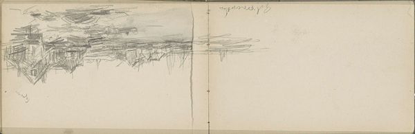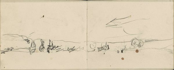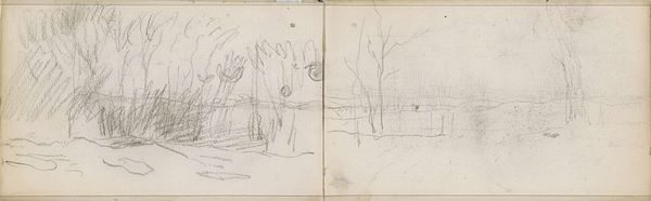 Curator: Anton Mauve created this evocative sketch, “Landschap,” sometime between 1848 and 1888. Currently residing in the Rijksmuseum, it’s rendered in pencil. My immediate feeling is spareness. It's stark but not entirely bleak. What's your read? Editor: Well, initially, the composition seems less concerned with detail than with suggesting a feeling of openness, like a fleeting glimpse into a bare winter scene. The horizon is loosely defined, and the bare trees create an almost rhythmic pattern. Curator: That resonates. Considering Mauve’s social context, and the era’s growing urbanization, these landscape studies become almost political statements, implicitly valuing rural life at a time when it was under pressure. There’s a clear romanticization here. Editor: Yes, but the roughness of the sketch is also noteworthy. It resists easy consumption. It feels more like an honest attempt to grasp form and space, a formal exercise. The vertical lines create a strong sense of depth. It's reductive in a way. Curator: Precisely. And I would add that the "reductive" element connects to broader societal anxieties around industrial progress. Simplification becomes a subtle act of resistance. We see the legacy of Jean-Jacques Rousseau, even at this late date. The individual alone in nature as a form of political resistance. Editor: An intriguing claim, though the interplay of light and shadow within such a simplified composition fascinates me even more. It hints at an emotional landscape. Curator: Absolutely. The minimal strokes almost evoke a sense of loneliness and introspection; but also maybe strength—tenacity. This piece, for me, really does ask the viewer to actively engage, almost filling in the gaps both in the picture and in the sociopolitical narratives from that moment. Editor: For me, it’s a lesson in economy of means, demonstrating the power of suggestion and implication. A quick pencil study offering up surprising complexity. Curator: Well, looking through this lens offers the viewer ways into a deeper investigation, to see this "economy of means" as representative of the economic landscape facing artists working in the impressionistic style. Editor: True enough; though what stays with me most vividly is how stark lines can yield something profoundly felt, regardless of the narrative it calls to mind.