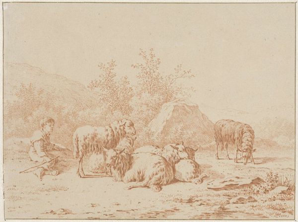 Editor: Here we have John Crawford's "A Landscape," a pencil drawing. It feels unfinished, almost like a memory fading. What might Crawford have been trying to capture in this fleeting scene? Curator: Considering Crawford's brief life, ending at just 26, this drawing resonates with the Romantic era's fascination with mortality. Was this sketch intended for public display, or was it a personal reflection on the transient nature of life and the British landscape? Editor: So the cultural context adds a layer of meaning to its seemingly simple form. Curator: Exactly. The art market and audience expectations of the time profoundly influenced even seemingly private works. This piece now prompts us to consider how societal pressures shaped Crawford's artistic choices, and its enduring presence in a collection like the Tate challenges us to reassess what is deemed "finished" or valuable.