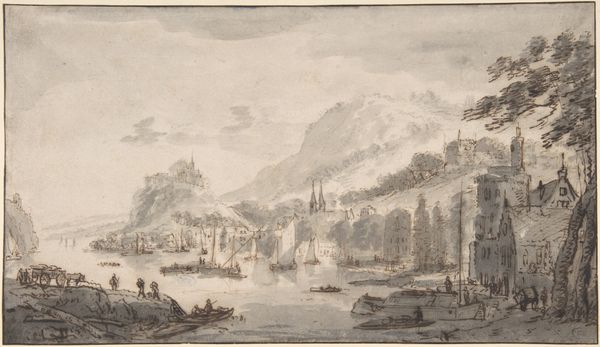 John Robert Cozens created this watercolor and graphite landscape drawing during a time when the Picturesque movement was in full swing. Cozens’s travels throughout Europe informed his rendering of natural settings. We get a glimpse of the late 18th century fascination with both untamed wilderness and idealized pastoral scenes. The subtle monochromatic palette softly evokes a sense of longing. Are we looking at a real place, or a remembered one? Consider the composition, how the layering of land, water, and sky invites you to contemplate nature. Cozens creates a world that feels timeless, yet also deeply personal. The sublime quality of nature is tempered with a gentle, reflective mood.