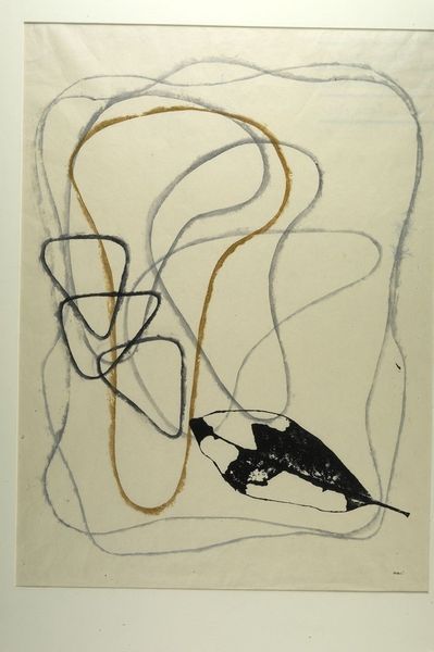 Editor: Victor Pasmore's minimalist print, *Points of Contact No. 3,* presents a compelling dichotomy between geometric precision and biomorphic abstraction. What symbols do you see within this interplay of forms? Curator: The linear abstraction resonates with the symbolic language of modernism. Notice how Pasmore uses basic shapes. The straight lines, almost like architectural frameworks, contrast with the organic, flowing lines. This opposition is not just aesthetic. Do you see how it suggests a tension between the rational and the intuitive? Editor: It's like a roadmap of the mind, a convergence of thought and emotion. Curator: Exactly. The "points of contact" become metaphors for these junctures within our own consciousness and cultural history. This piece holds an echo of our collective memory. Editor: I now perceive how Pasmore evokes these cultural dichotomies through such simple forms. Curator: Indeed, art invites us to explore these connections, both within and without.