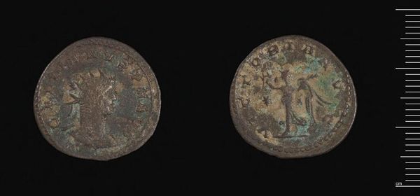 Curator: Here we have an Antoninianus of Trajan Decius, weighing a mere 4.39 grams, residing here at the Harvard Art Museums. Look closely at the wear, the subtle corrosion. Editor: It appears quite degraded, yet the central figure's profile retains a delicate strength. The composition, contained within that small circular frame, is remarkably balanced. Curator: Indeed. Considering its function as currency, its material composition—likely a debased silver alloy—speaks volumes about the economic pressures of the time. Its value wasn't just monetary. Editor: The materiality, though degraded, contributes significantly to its aesthetic power. The subtle patinas evoke a sense of antiquity and the passage of time. Curator: And let's not forget the labor involved. Minting these coins was a large scale operation requiring an enormous work force. Editor: Seeing the coin in person grants a sense of connection to the past. Curator: Agreed. The Antoninianus represents the tangible intersection of power, economics, and artistry.