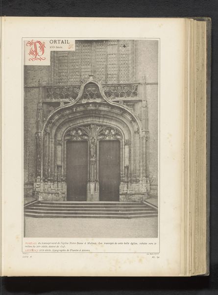 Editor: This print, taken before 1889, depicts the stone portal at the southern transept of the Collegiate Church of Notre-Dame in Dinant. The architecture just strikes me as incredibly imposing. What significance do you see in a structure like this? Curator: Well, the architecture speaks volumes. It’s Gothic, clearly, so we are already immersed in a world of aspiration – these soaring vertical lines quite literally directing the eye, and therefore the spirit, upwards. Tell me, what emotions are conjured up when you see this print? Editor: I guess awe, definitely a sense of something powerful and permanent. And maybe even a bit… detached? Like, it’s a record of something, rather than the thing itself. Curator: Precisely. It acts as a vessel of collective memory, doesn’t it? Think about the symbolic weight embedded within these structures. The archways themselves—a motif of passage, of entering a sacred space, and the sculptures nestled above evoke biblical stories, reinforcing a sense of shared history. Does that resonate with you? Editor: I think so, yeah. It's easy to forget these buildings were designed to teach as much as to inspire. The details all had meanings back then. Curator: Indeed! Every stone, every carving was intended to instill a certain narrative, reaffirm a specific belief. It served as cultural memory in action, especially important at a time when literacy was not common, images became critical conveyors of value and tradition. I think this image has staying power. Editor: I never considered the impact of visual imagery to those who were non-readers. It feels like viewing the church with entirely new eyes. Thanks. Curator: My pleasure, thinking of symbols and images as an ever-flowing current from one generation to the next is a fascinating field of inquiry.