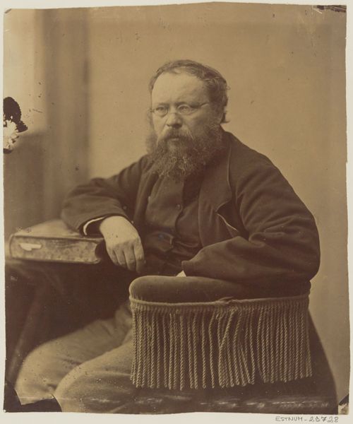 This portrait of Pierre-Joseph Proudhon was captured by Félix Nadar, a fellow revolutionary, with the new technology of photography. Proudhon, a prominent socialist thinker, is depicted seated, his posture relaxed yet formal, hands resting on his lap. Consider how the simple act of sitting, so ubiquitous, can carry layers of meaning. In ancient Greece, statues of seated figures symbolized authority and wisdom, often depicting gods or philosophers. This posture, repeated through the ages, reappears during the Enlightenment. Thinkers are depicted in a state of contemplation and intellectual repose, connecting the individual to a lineage of knowledge. The photograph is a study in repose, yet it also suggests a powerful, internal energy – the silent revolution brewing in the mind of a man. This seated portrait connects Proudhon to a tradition of profound thought. It is a symbol that has evolved, yet its core meaning—authority, wisdom, and intellectual pursuit—remains resonant.