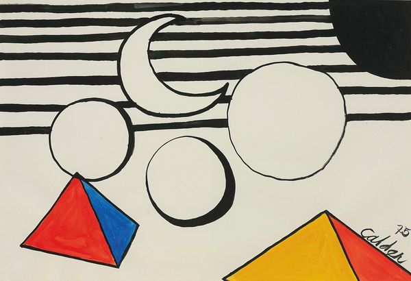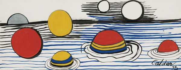 Alexander Calder gave us "Six White Orbs," probably on paper, and most likely in 1975. It’s all about these playful floating shapes. There’s something so direct about Calder’s mark-making, a kind of joyful simplicity. Look at the way he lays down the colors: bold primaries, thick black outlines, all creating a real sense of movement. You can almost feel him at work here, deciding where the lines should go, how much color to add, and then deciding, *that’s it!* I love how the black lines become both structure and decoration, and how the orbs become little blank windows, inviting you to project your own ideas in. The little pops of red, yellow, and blue underneath give them a nice grounding. It all reminds me of Joan Miró, but with Calder’s signature sense of whimsy. It’s a reminder that art can be serious fun.