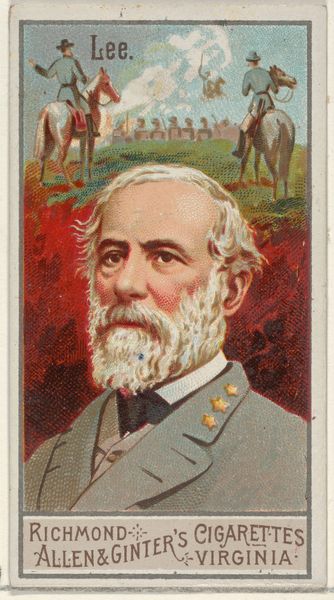 Editor: Here we have a lithograph from 1888, a portrait of “Stonewall” Jackson, part of the Great Generals series created for Allen & Ginter Cigarettes. What strikes me is the tension between the idealized depiction and the historical baggage this figure carries. What's your take on it? Curator: Well, the image is deceptively simple. We need to unpack its historical context. These cards were inserted into cigarette packs, right? This means they were widely disseminated, shaping popular perception. This idealization of Confederate figures, like Jackson, served to normalize and even glorify a painful and oppressive past. How does that sit with you? Editor: It feels unsettling. It's easy to see this as just a portrait, but knowing it was used to promote cigarettes, and also promote a particular narrative about the Civil War… It adds layers of meaning. Does the style – this kind of straightforward realism – contribute to that normalization? Curator: Absolutely. The realism lends an air of authority, erasing the complexities of Jackson's actions and beliefs. Think about who this image was intended for: a predominantly white, post-Reconstruction audience. What kind of message were they receiving? It’s not just about art; it's about power, representation, and the construction of history. How do you see it functioning as propaganda? Editor: I see your point. It’s not just a picture; it's a carefully constructed message that glosses over a really troubling part of American history. Looking at it now, it feels less like a portrait and more like a tool for shaping public memory. Curator: Precisely. It’s a stark reminder of how seemingly innocuous images can perpetuate harmful ideologies. We have to actively challenge the narratives they promote. Editor: This has given me a whole new perspective. I won’t look at historical portraits the same way again.