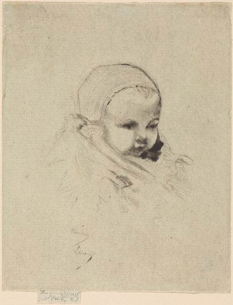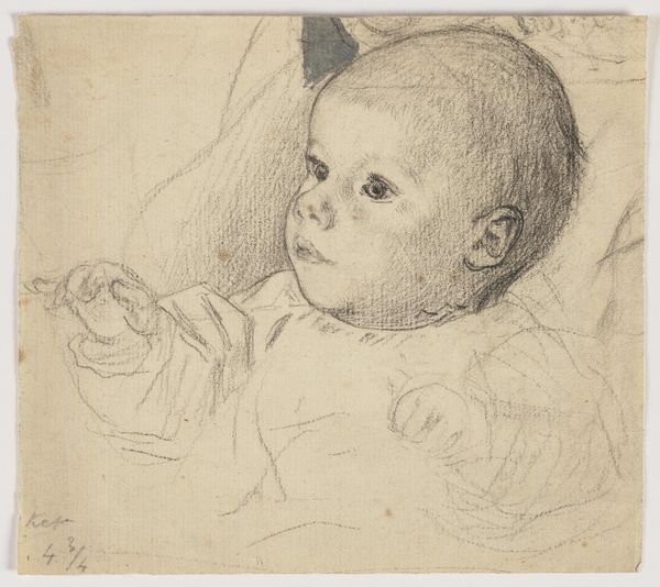 Editor: This is an untitled pencil sketch of a child by Arthur Boyd Houghton, currently held at the Tate. She seems to be deep in thought, maybe even a little sad. What do you see in this piece? Curator: The averted gaze and crossed arms speak volumes. Consider the Victorian era, when childhood innocence was idealized, yet children from working-class backgrounds faced harsh realities. Editor: So, you're suggesting her posture might be a silent protest against societal expectations? Curator: Precisely! Houghton may be subtly commenting on the disparities of childhood, challenging the romanticized notions of the time. The sketch itself feels unfinished, echoing the incomplete narratives often assigned to marginalized groups. Editor: I hadn't considered the social commentary. It's amazing how much meaning can be packed into a simple sketch. Curator: Art often reflects the unspoken truths of its time. Hopefully we can learn from it.