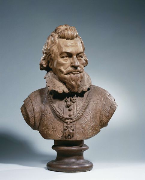 Jan Claudius de Cock made this terracotta bust of Maurice, Prince of Orange, sometime in the late 17th or early 18th century. It memorializes a figure from over a century earlier, so it’s worth asking what purpose such a representation might serve. The Dutch Republic was a major economic and military power at this time, a mercantile society with a large overseas empire. We can see how the artist used visual cues to project the status and authority of his subject. The Prince’s armor, the lace collar, and the medallion all signal power, but are carefully balanced to create a sense of noble restraint. De Cock would have been working within a specific set of institutional and cultural expectations for portraiture and he clearly knew how to operate within that system. To better understand the image, it would be useful to examine the patronage networks that supported artists like de Cock, as well as the display contexts for this kind of sculpture.