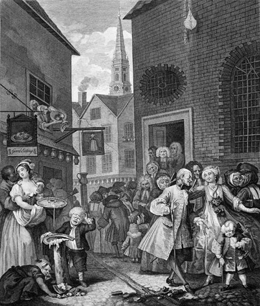 William Hogarth’s Election Propaganda, an oil painting from the 18th century, satirizes the corrupt practices of British elections. Hogarth’s masterful brushwork captures the textures of daily life. From the rough brickwork and timber framework of buildings to the fine clothing of the figures, the material world is vividly rendered. Notice the signs hanging above the crowd. These would have been produced by sign painters, tradesmen who played a crucial role in shaping public opinion. The signs advertise candidates and parties, often employing symbolism and caricature to sway voters. Hogarth highlights the manipulation inherent in this process, where images are tools for political maneuvering. The painting's social significance lies in its depiction of labor and class. Hogarth exposes the ways in which the wealthy elite exploit the working class through bribery and deceit. The artist draws attention to the material conditions of political life, inviting viewers to critically examine the relationship between power, representation, and the everyday realities of society.