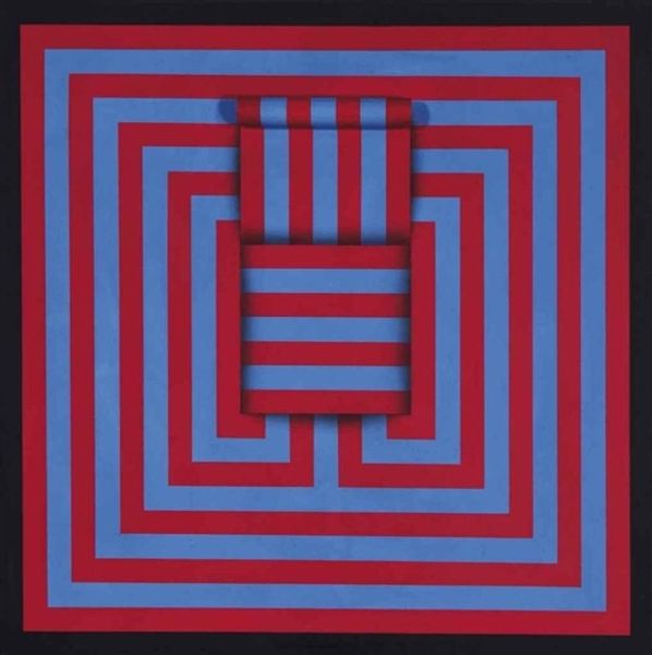 Editor: So, here we have Gordon House's "Red Matrices." I find its repetition quite mesmerizing, almost hypnotic. What do you make of the work? Curator: It's like a visual puzzle, isn’t it? I see echoes of ancient labyrinths mixed with a very modern, almost digital sensibility. It makes me wonder, were these pathways of red designed to trap us, or guide us? Editor: That’s a lovely thought. Curator: It feels almost primal. The starkness is softened by the handmade quality of the print. It gives it an interesting tension, don't you think? Editor: I agree. I hadn't considered the handmade aspect against the digital feel. Curator: House seems to be asking: can something be both chaotic and ordered, ancient and futuristic? Editor: It definitely gives me a lot to think about. Thanks!