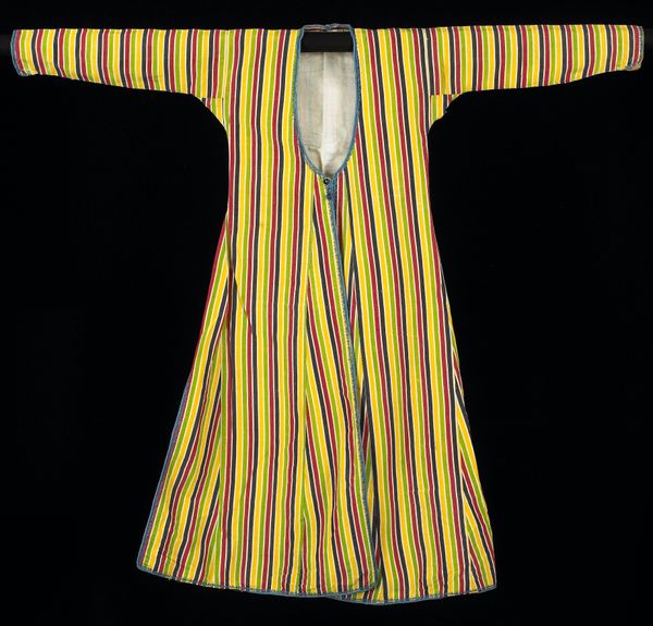 Editor: Here we have Djotene Tarawale’s "Young Man's Shirt" from around the 20th century, crafted from cotton. The repetition in the patterns really stands out. How might you interpret this work? Curator: As a materialist, I’m drawn to the labor inherent in its creation. Look closely. The repeated motifs weren’t just designed; they were woven, likely by hand, representing a significant investment of time and skill. Think about the social context: What does it mean to create such an intricately patterned garment for a "young man"? Was it intended for everyday use, or for ceremonial occasions? Editor: So, you’re suggesting we consider not only the finished product, but the process of its making and its social implications? Curator: Precisely. We must also remember that cotton wasn’t always readily available. The shirt reflects trade networks and systems of exchange. Considering how the materials came to be, the choices in the manufacturing techniques used in production and their reflection upon this culture’s use, can bring out dimensions that an analysis limited to visual design may miss. Where was this cotton sourced, who was involved, and how did it make its way into Tarawale's hands? Editor: That makes me think differently about it. It's no longer just an article of clothing, but a reflection of a whole economic system. Curator: Exactly. What happens to labor if this kind of artistry becomes mechanized or traded? This challenges boundaries and traditions between art and culture in an important moment of production. It is at once an everyday piece with social commentary in its form. Editor: Thank you! Considering the processes involved in creation gives a richer appreciation of the piece. I see that labor and trade have created more meaning for me.