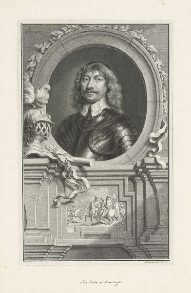 This is Michel Lasne's Portrait of Nicolas de Bailleul, an engraving dating back to the 17th century, now held at the Rijksmuseum. Note how Lasne uses a formal and structured style in this portrait, emphasizing the geometry of the oval frame. The subject, Bailleul, is centered, creating a focal point that draws the eye immediately. The fine, precise lines used to depict Bailleul's features and clothing show technical skill, while also conveying a sense of formality fitting for a portrait of this era. The composition functions as a statement of social identity, a visual representation of the subject's status and role within society. The portrait doesn't just capture a likeness; it uses a visual language to express social and cultural meanings. Consider how the artwork uses form and structure to communicate ideas about identity, status, and representation.