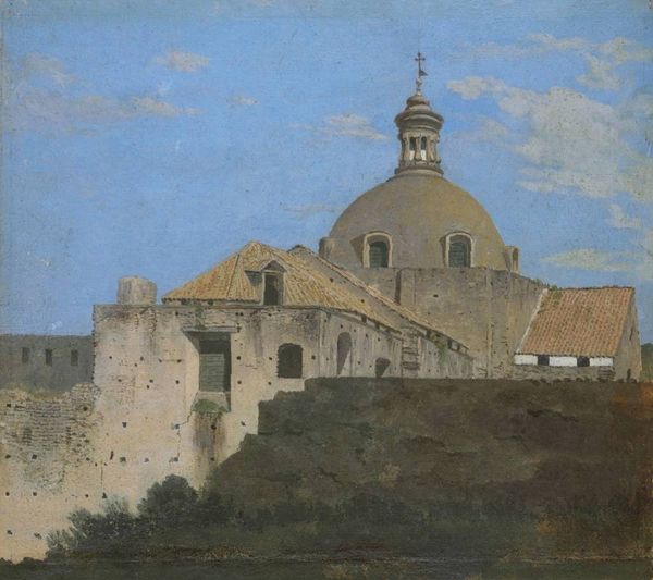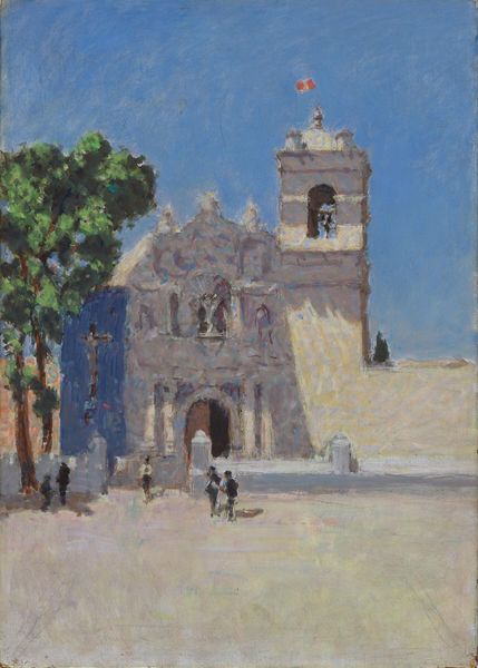 Thomas Moran painted 'Maravatio in Mexico' using oil on canvas. At first glance, the composition is structured by the imposing architectural forms bathed in a warm, golden light, evoking a sense of timelessness. Moran masterfully uses light and shadow to define the textures of the aged building, setting up a dichotomy between the solid structure and the ephemeral atmosphere. The arrangement of figures around the doorway introduces a narrative element. Consider the way the architecture may act as a signifier of stability and tradition, while the gathering people represent community and continuity. These elements combine to create a discourse around cultural preservation and the enduring human spirit. Notice how the church, rendered in such detail, serves not only as a visual anchor, but also as a point of departure for contemplating the interplay between materiality and meaning. This painting invites us to reflect on how we construct and interpret our surroundings through the lens of art.