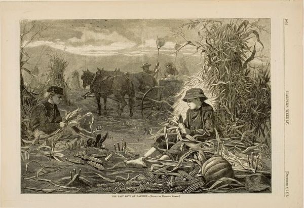 This drawing by Winslow Homer, titled 'The Last Days of Harvest,' presents us with a scene laden with symbols of agrarian life. Corn, abundant here, is more than mere sustenance; it is a symbol of fertility, renewal, and the cyclical rhythm of life, deeply rooted in ancient agricultural rites. The act of harvesting, prominently featured, has echoes in numerous cultures, from the Eleusinian Mysteries of ancient Greece to the harvest festivals of medieval Europe. These rituals sought to ensure the land’s continued bounty, reflecting humanity’s enduring dependence on the earth. Similarly, the pumpkin, a more New World motif, is a symbol of prosperity, warmth, and plenty. The image evokes a primal connection to the land, reminding us of our shared history with agrarian societies. The weariness etched on the faces of the laborers, the weight of the corn, are visceral reminders of the toil and persistence required to cultivate our world. These are not simply illustrations; they are conduits of collective memory.
