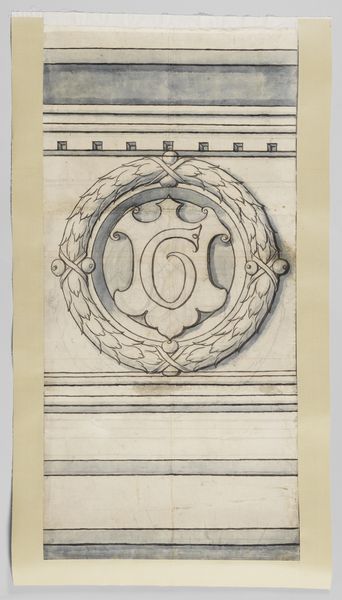 Editor: This is "Frame Design," a 19th-century ink and pencil drawing on paper, currently held at the Metropolitan Museum of Art. The drawing is incomplete; only the upper half of the frame design is fully rendered, and its simple, unfinished quality gives it a raw and intimate appeal. What sort of symbolism do you find embedded in the decorative flourishes? Curator: It's fascinating how we instantly recognize these recurring motifs: the stylized acanthus leaves, the symmetrical volutes. These aren’t merely decorative; they evoke a lineage stretching back to classical antiquity. The frame, traditionally, demarcates a space—a portal—aren't they? So, what does it mean when that very boundary calls upon the weight of historical precedent? Editor: That's a really interesting idea about the boundary acting as a historical echo! Do you think the artist intentionally chose these classical motifs to lend a sense of timelessness or authority to the work the frame would eventually surround? Curator: Precisely. Think of these ornaments as visual quotations, little mnemonic devices triggering associations with power, intellect, and even spiritual significance. But notice too that it’s incomplete. The lower half exists only as a faint geometric suggestion. Editor: That incompleteness makes me wonder if this drawing served a more functional role, perhaps as a template, than an artwork in and of itself. It almost invites collaboration, or even, dare I say, completion? Curator: A very astute observation! The beauty is often in the beholding, right? We bring our own associations to bear, layering meaning onto already potent symbols. These classical forms are constantly reinterpreted, and they have new things to tell us in this unfinished state. Editor: Thank you! I hadn't considered how the design elements act as coded references, instantly connecting us to centuries of cultural heritage. Curator: Absolutely. And hopefully it highlights how art can both reflect and shape our understanding of the past and ourselves.