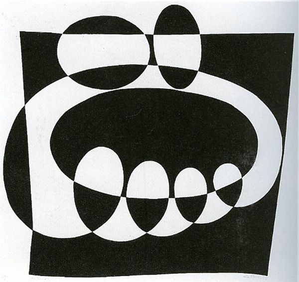 Editor: Here we have Josef Albers' "One of 28 slides of prints." The stark contrast of black and white creates a striking graphic image. What can you tell me about this work? Curator: Look closely at the photographic process, and the material constraints of mass production. Consider how Albers uses a reproducible medium to explore perception. The slide format itself speaks to dissemination and accessibility. How does that challenge notions of the unique art object? Editor: That’s interesting. I hadn’t considered the impact of mass production on its artistic value. Thanks for pointing that out! Curator: Indeed, it shifts our understanding of art's value away from the auratic object and towards the conceptual and perceptual experience.