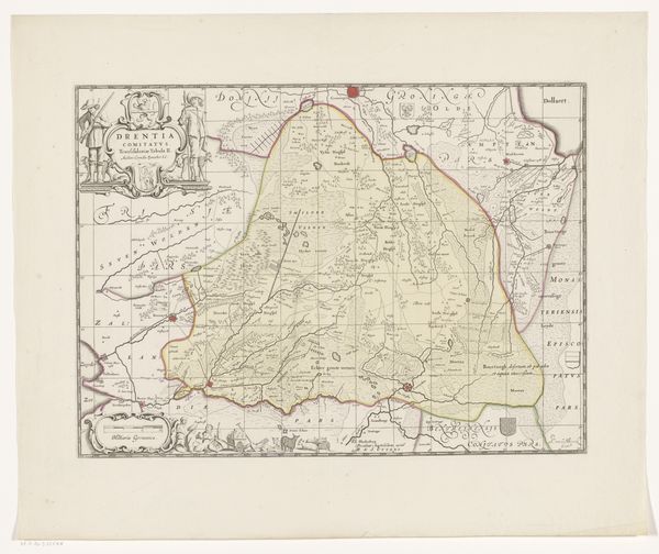 Editor: This is a fascinating engraving titled "Kaart van het Haarlemmermeer en omliggende gebieden," which translates to "Map of the Haarlemmermeer and surrounding areas." Created around 1745-1769, it gives us a birds-eye view through delicate etching. I am struck by how it renders the landscape in such an orderly way, almost imposing a sense of control. How do you interpret the significance of this work? Curator: It's interesting you pick up on the sense of control. This map is not just an objective representation of geography. It’s a visual assertion of power and governance. Consider the historical context. This map emerges during a period of intense land reclamation projects in the Netherlands. The Haarlemmermeer itself, a large lake, was eventually drained in the 19th century. Editor: So the map is also a form of advertisement or propoganda? Curator: Exactly. Maps like these were commissioned to promote these ambitious engineering projects, attracting investors and showcasing the potential for agricultural and economic development. The map isn't just showing the land; it's selling a vision of a transformed and productive landscape, with an illusion of certainty that’s quite powerful. Editor: That makes me think about the role of cartography beyond simple navigation. The choice of colors, the neatness of the lines...it all contributes to that narrative. What kind of influence did places commissioning art influence artists like the person who created this piece? Curator: The influence would have been considerable, certainly tied to patronage. Maps like this are visual documents of political and economic ambition, tools that reinforced and legitimized state power. I think what makes this piece striking, as a cultural artifact, is its layering of geographical data and implicit social commentary. Editor: It’s fascinating to see how something as seemingly straightforward as a map can be so loaded with historical and political meaning. Thanks for illuminating all of that. Curator: And thank you, your observations helped connect this work to much larger stories about our ambition to manage and transform the natural world.