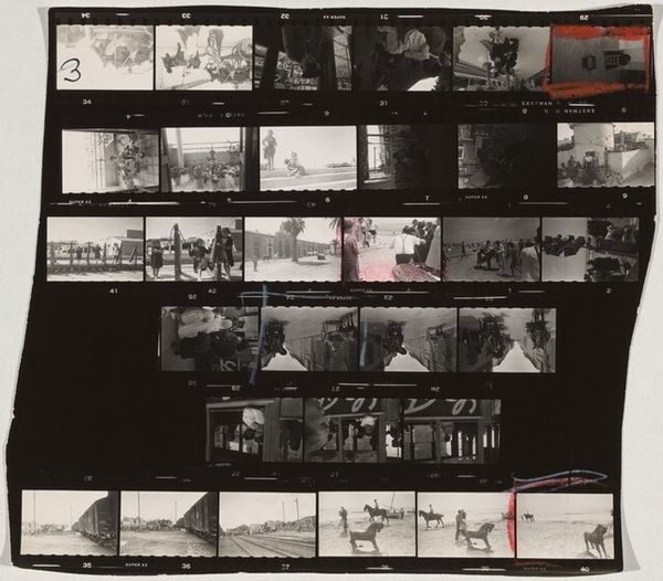 Curator: This photograph by Jack Gould, simply titled "Untitled (man on runway near large Air Force jet)," presents a solitary figure on a vast airfield. The image, part of the Harvard Art Museums collection, captures a moment of quiet unease. Editor: It’s striking how the small scale of the print intensifies the feeling of isolation. The man's posture, the gun slung over his shoulder… it feels both powerful and vulnerable. Curator: The image resonates with the Cold War era, doesn't it? The ever-present threat of global conflict, visualized through the silent guard and the looming Air Force jets. It's also about the role of the military in shaping American identity. Editor: Absolutely. And the composition directs us to consider power structures, the individual against the immense machinery of war. Whose freedom is he protecting, and at what cost? Curator: It reminds us of the complex relationship between military might and societal anxieties, anxieties reflected in the art and culture of the time. Editor: It’s a stark reminder that even in moments of apparent calm, the potential for violence simmers beneath the surface. It leaves you pondering the weight of that responsibility.