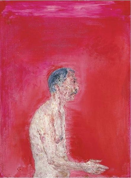 Curator: Staring back at us is Chronis Botsoglou’s work, “THE EMBALMER,” created using oil paint and impasto techniques. What's your immediate take? Editor: My gut reaction is melancholy. The muted tones and the fragmented, almost dissolving figure evoke a sense of loss and transience. It feels intensely personal, like gazing into a half-forgotten memory. Curator: Botsoglou often engages with figuration and expressionism to confront the human condition head-on, wouldn't you say? Considering the title, the artist pushes us to consider themes of mortality. Embalming itself is a fraught cultural ritual. How does the painting perhaps invite questions surrounding the sanitization and management of death in modern societies? Editor: Absolutely. It highlights how we deal with death, attempting to preserve and control what is fundamentally uncontrollable. Look at the heavy impasto. The very texture of the paint embodies decay and reconstruction simultaneously. This technique reinforces a central concern with the fragile human body and questions of decay, as well as identity construction. Curator: It's also worth noting the subject's somewhat ethereal quality. The stark contrast between the raw brushstrokes forming the figure and the softer purplish background invites interpretations regarding power and societal hierarchy. One wonders about this embalmer's occupation and place within a community as we unpack what it signifies, and who holds this power. Editor: A really fascinating observation. This piece makes me reflect on the social implications that the work seems to examine. This work feels profoundly intimate, yet it exists within a broader historical and social context of dealing with grief, loss, and our own bodies, where, perhaps, death might feel less lonely. Curator: I concur; through this painting, we are confronted by our inevitable finitude. It encourages a space to confront it, and find both individual and collective responses to our human predicament. Editor: I appreciate how this work can operate in that space, while challenging societal constructs about mortality.