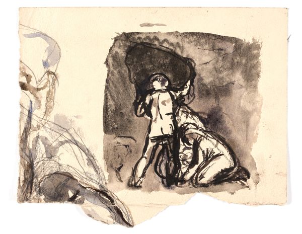 Oluf Hartmann made this study for "Daedalus and Icarus" in charcoal and pencil on paper. The story of Daedalus and Icarus is a potent one, especially in the late 19th and early 20th centuries. It's a Greek myth about human ingenuity, but also about the limits of human knowledge. Here, Hartmann depicts Daedalus attaching the wings to Icarus, who stands passively. We know that the story ends with Icarus flying too close to the sun, his wax wings melting, and him falling to his death. The myth would have resonated in a time when there were many new technological advances, like flight, but also many new dangers. Art historians often look at how artists engage with political and social issues through the lens of classical mythology, and the story of Daedalus and Icarus provided a particularly fertile ground for this kind of engagement. Understanding the context in which Hartmann was working helps us understand the artwork better.
