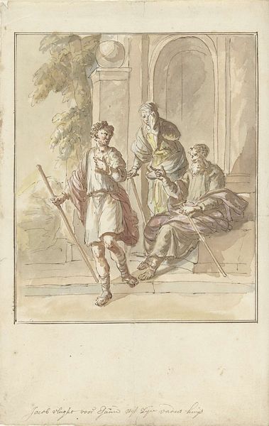 This drawing by Elias van Nijmegen depicts the encounter between Diogenes and Alexander, rendered with pen in brown and gray ink, and watercolor. Observe the sun, a symbol of enlightenment, positioned above the two figures. The sun, often associated with Apollonian ideals of reason and clarity, is here juxtaposed with Diogenes, the philosopher known for his rejection of societal norms. Consider the gesture of Alexander, extending his hand towards Diogenes. This motif appears in various forms throughout history—from religious iconography depicting divine encounters to secular portrayals of power dynamics. The outstretched hand is a primal symbol of offering, of potential connection, yet here it is met with Diogenes' simple request. The Cynic's desire to remain in the light becomes a potent reminder that true freedom and enlightenment are not bestowed by rulers, but are intrinsic to the individual who dares to seek them. The image evokes a complex interplay of power, humility, and the enduring human quest for meaning.