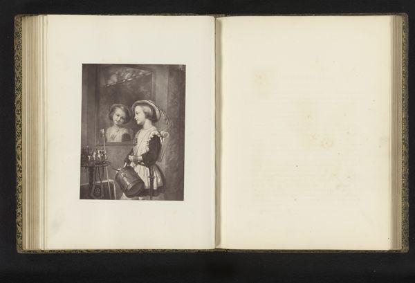 This is a photogravure of an engraving after a painting of two praying girls by Godfrey Wordsworth Turner. The image is striking in its composition, primarily due to its study in contrasts and the subtle use of tonal gradation. The somber background accentuates the girls' luminous, innocent faces, which serve as the focal point. Turner masterfully exploits light and shadow to give form to his subjects, emphasizing the tactile qualities of the soft fabrics and delicate skin. The way the light falls on the girls' faces draws attention to their clasped hands and kneeling postures, heightening the work’s solemn and contemplative atmosphere. The linear precision of the engraving captures the sentiment of the girls with a quiet intensity. One can not ignore the composition and the formal execution, which underscore the symbolic weight of childhood innocence and religious devotion.