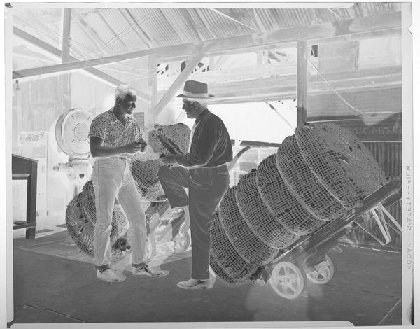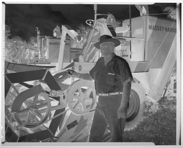 Editor: This is an untitled photograph, "woman on tractor," by Lucian and Mary Brown. Something about the inverted tones makes it feel dreamlike, almost like a memory. What do you make of this image? Curator: It's funny you say "dreamlike," because I feel like I'm seeing a memory of a future that never arrived! It reminds me of the optimistic, almost naive, visions of technology from the mid-20th century. Editor: That's interesting, a future that never arrived. So it's not just about the woman or the tractor itself? Curator: Not entirely. For me, the Browns captured that particular moment when technology still held the promise of a brighter, simpler life. A life, perhaps, where even farming could be elegant and… photogenic! Editor: I see what you mean. It's a hopeful image, even with the inverted tones. Thanks for sharing that perspective! Curator: Absolutely. It's a reminder that even in the starkest images, beauty and optimism can be found.