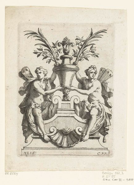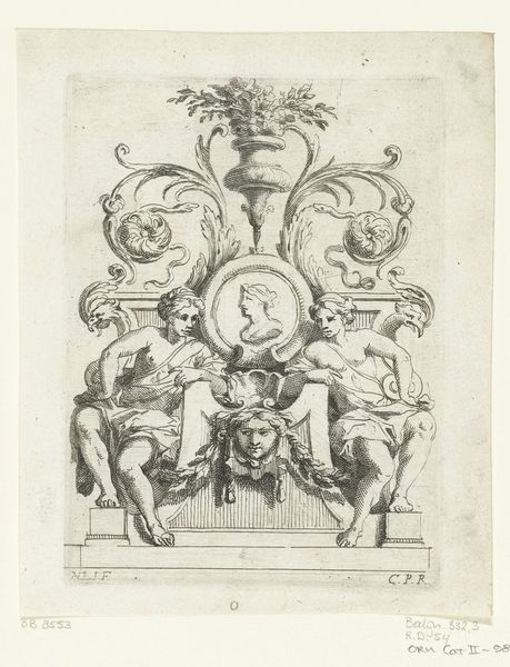 Editor: Here we have Nicolas Pierre Loir’s "Two Winged Women with Medallion," a print from about 1660 to 1670, residing in the Rijksmuseum. The line work is incredibly detailed. What aspects of its creation and historical moment strike you? Curator: I see an exquisite example of intaglio engraving, forcing us to consider the socio-economic implications of printmaking in the Baroque era. This wasn't merely aesthetic expression. It was a commodified object produced through specific labour. What impact did printmaking have on circulating ideas at the time, in your opinion? Editor: Well, the wide distribution, the relatively affordable cost of prints would allow new visual concepts to enter middle class markets like never before, but in what ways does that change our perception of a print like this? Curator: Exactly. Think of the engraver as a skilled artisan embedded within a system of workshops and patronage. Each line meticulously carved becomes a record of human labor and material transformation. The paper, ink, and press used contribute meaning just as much as the subject matter. How does understanding its materiality influence your reading of the allegorical figures? Editor: It casts a new light. I'm more conscious of how the print transforms allegory into a reproducible idea, and how its distribution informs a material culture, if that makes sense. Thank you for emphasizing the economic context, that has broadened my awareness. Curator: And recognizing how its existence intertwines material conditions with symbolic meaning offers valuable perspectives. Thanks!