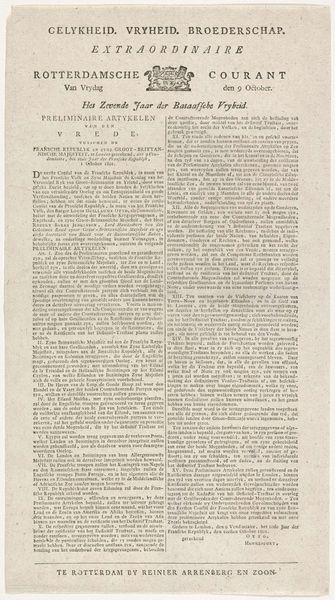 Curator: The work before us, “Zeeslag bij Duins (rechter tekstblad),” created by Salomon Savery in 1640, is a meticulously detailed engraving on paper. Editor: It's like a newspaper layout from centuries ago, crammed with tiny text! What is it, exactly? Curator: Formally, observe how Savery employs the grid. He segments information through rigorous rectangular organization. Semiotically, we recognize text blocks juxtaposed against potential illustrations of naval battles. Do you discern any formal qualities within these stark textual contrasts? Editor: So, it's almost like he's contrasting descriptions and events using space? How does that affect its meaning, if it all this really *is* all about its composition? Curator: Precisely! The density and organization guide the viewer, offering a structured narrative. Notice how the artist directs our eye. What about the deliberate absence of purely pictorial components? How does that change its potential reading? Editor: Is the *style* here just, functional? If he really is focusing more on conveying *textual* details above visual, is that even *art*, or merely documentation? Curator: Such tensions exemplify early news dissemination. Does this formalized layout affect how we "read" the historical naval battle described in it? We're trained to view newspapers, after all, so, is that modern association obscuring something deeper at play? Editor: I hadn't considered that, it being essentially “news” printed, but, presented as...a form unto itself. Fascinating! Curator: Indeed. We are perhaps observing nascent news presentation finding form.
