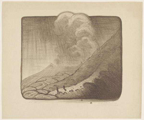 Wijnand Otto Jan Nieuwenkamp made this intriguing print, Vlucht voor de bui, using an etching technique. The mark-making is all about texture, building up a complex network of lines to create depth and drama. There's this incredible swirling pattern to the lines, especially in the 'storm' overhead, that feels almost alive. It's like the weather itself is breathing down on the figure, who is hunched over, seeking shelter. You can almost feel the weight of the storm. Look closely at how Nieuwenkamp varies the density of the lines. It creates a fantastic contrast between the solid, tactile surfaces of the fallen tree, and the airy, almost chaotic atmosphere of the storm. It makes me think of Piranesi, with his dramatic use of light and shadow and his knack for turning architecture into something almost menacing. But here, it's nature that's doing the menacing, and it's utterly captivating.