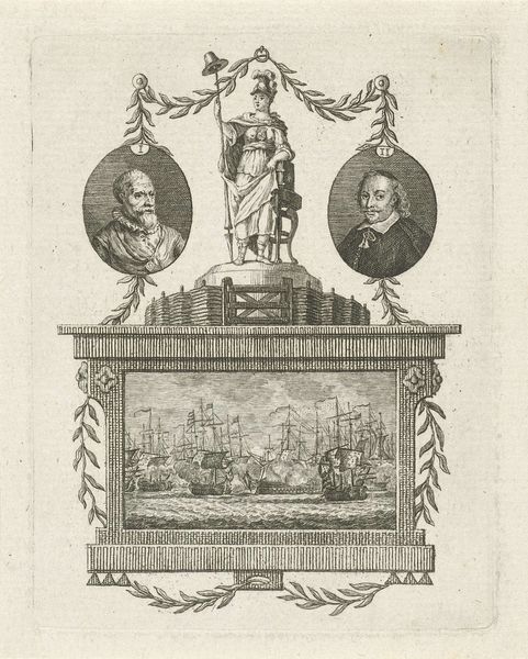 This engraving, made by Noach van der Meer II around 1774, is an allegorical depiction of Pieter Adriaansz. van der Werff. The printmaking process itself is central to understanding the image. Engraving involves meticulous labor, cutting lines into a metal plate, which are then inked and transferred to paper. This reproductive medium was critical to disseminating ideas widely, a parallel to the virtues of steadfastness and fidelity celebrated here. Notice the tools depicted: hammers, anvils, and stone blocks. These aren't just symbolic; they evoke the skilled trades and the working classes, essential to the economic and social fabric of the Dutch Republic. The precision of the engraving lends a sense of order, mirroring the values of industry and stability. Van der Meer emphasizes the importance of materials, making, and the broader societal context. This challenges the idea that fine art is somehow separate from the world of craft and labor.