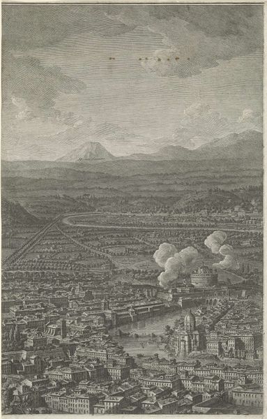 Giuseppe Vasi made this panorama of Rome as an etching sometime between 1710 and 1782. It is a bird's-eye view that gives the viewer a sense of the city's landscape within the landscape of Italy itself. The image's meaning is formed through its visual codes and cultural references. Rome, as a geographic location, is a layered signifier. At the time this was made, Rome was an important city in the Papal States. It was defined by its geographic location and religious power. The image portrays not only the city itself but also the various institutional powers, like the church, that shaped life in the city. As historians, we can better understand works like this by researching not only the artist but also the city and the institutions that shaped its culture. Art is contingent on its social and institutional context.