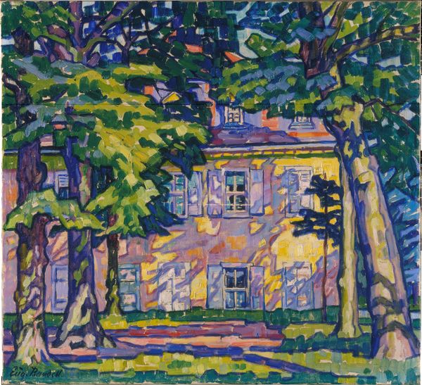 Konstantin Korovin made this garden scene, probably in oil, with a real sense of freedom. Look at the bravura of his brushstrokes! It's like he’s dancing with the paint, right? I love how the buildings almost dissolve into the foliage, a real push-pull between structure and nature. There's this one little dab of salmon pink near the center, nestled among all those lavenders and blues. It’s a tiny detail, but it really sings, a focal point that makes the whole thing vibrate. The surface looks thick and juicy, the paint applied with visible energy. I imagine he was using a big brush, loaded with pigment, not afraid to let the strokes be seen. Korovin’s work reminds me a little of Bonnard, in the way he uses color to create a mood, a feeling. It’s less about representation and more about capturing the essence of a place. Ultimately, this piece is about a mood, a moment, a sensory experience rather than a literal transcription of a garden.